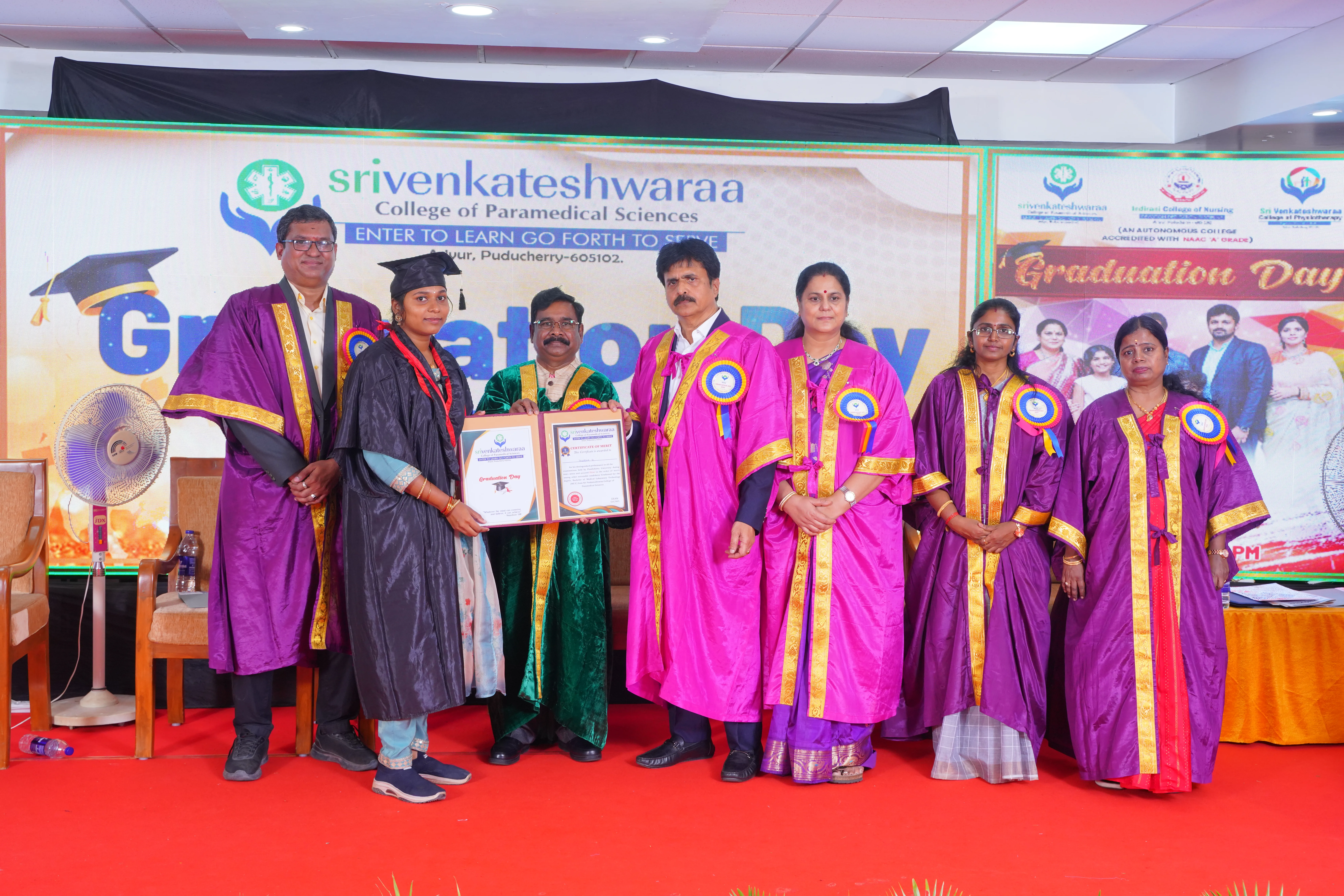 Sri Venkateshwaraa College of Paramedical Sciences a unit of Ramachandra Educational Trust, was established in the year 2010 and currently offers Bachelor and Master in Physiotherapy, (www.svcopt.ac.in), Bachelor in Medical Laboratory Technology, Bachelor in Medical Radiology and Imaging Technology, and diploma courses in Radiology, Cardiology & Dialysis. Several other courses like Diploma in Medical Records Science, Ophthalmic Assistant, Audiology & Speech Language Pathology, and Clinical Embryology, Bachelor in Cathlab Technology, OT & Anaesthesia Technology, Optometry, Accident and Emergency Care Technology, Cardio-pulmonary Perfusion Technology, Physician Assistant, Critical Care Technology, post-graduation in Medical Laboratory Technology, and Epidemiology are all in various stages of curriculum development and will be offered shortly. The academic excellence of both the students and faculty is on par with the other premium institutions in and around Puducherry, securing maximum results, gold medals, and 100% placements every year. SVCPMS is a sister concern of the ‘State of Art’, Sri Venkateshwaraa Medical College Hospital and Research Centre, 1160 bedded Tertiary Care Hospital in Ariyur, Puducherry.